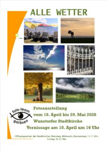 Wunstorf – Wetter-Fotos in der Kirche: Sturm, Frost und Sommersonne – „Alle Wetter“ zeigt Naturmomente, Vernissage am 18.04.2026.
